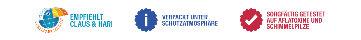Alle HARI-Papageienfutter sind sorgfältig geprüft, mehrfach getestet und unter Schutzatmosphäre abgepackt!